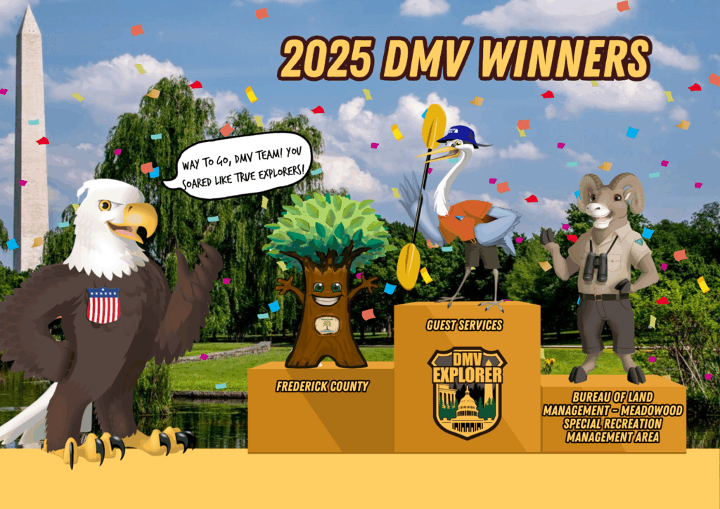 The DMV Explorer 2.0 ran from August 15 – October 31, 2020. Players were able to earn badges by completing Missions in the area, and were entered in a draw to win other cool prizes as well! Participating sites can be found all over the greater D.C. area, including in Maryland and Virginia.