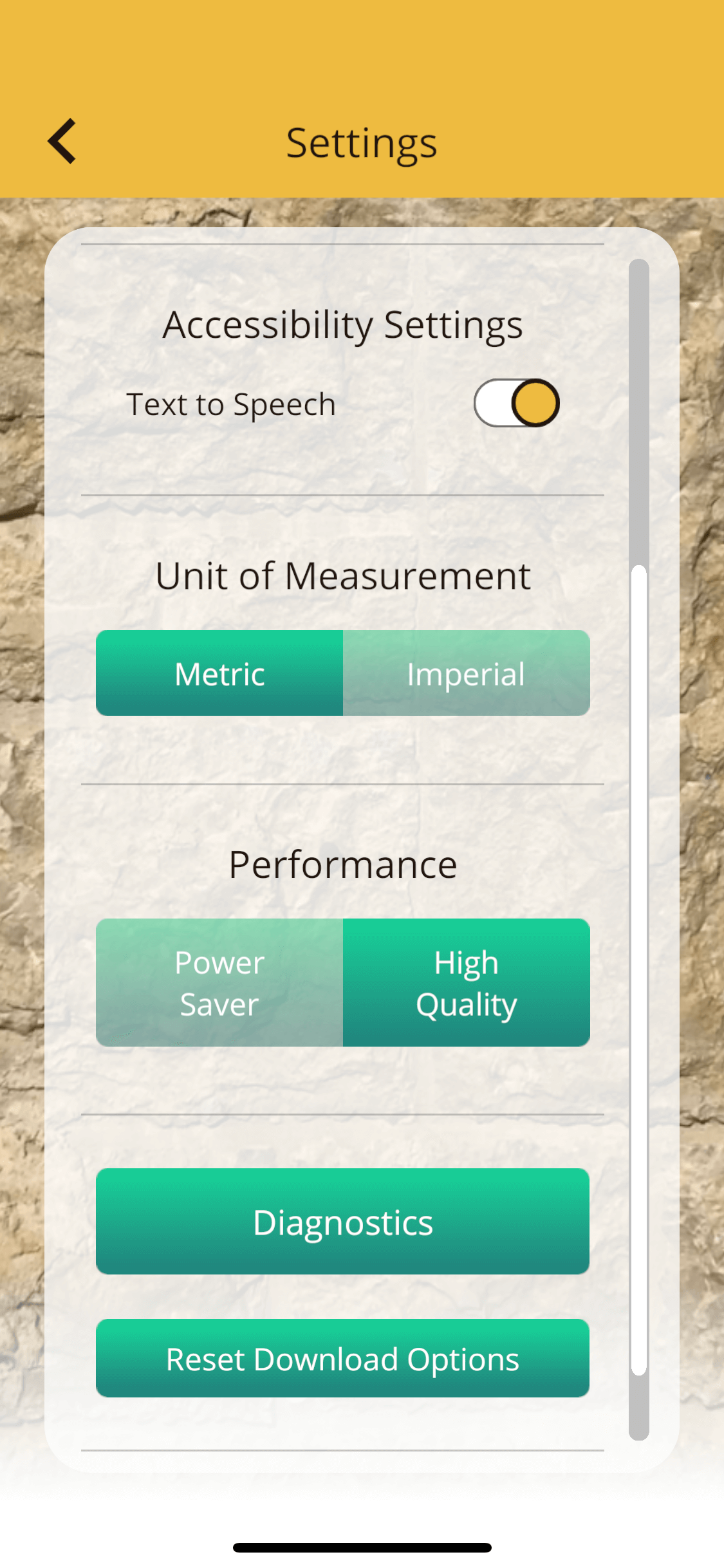 If the app is using a lot of battery, there is a toggle just above Diagnostics, which you can flip between High Quality and Power Saver. The app may not display as smoothly in Power Saver mode, but will provide your players’ battery a bit of a break.