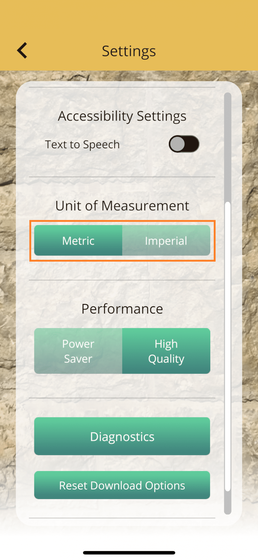 It is set to Metric by default, but you can switch that if you want to view distances in terms of miles rather than kilometers.
